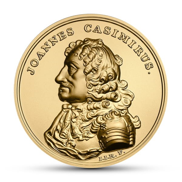 Na awersie monety czytamy tekst z rewersu medalu (w tłumaczeniu): Drugi syn Zygmunta III z Konstancji Austriaczki, przez 20 lat walcząc dzielnie ze zmiennym szczęściem, po wojnach z Kozakami, Tatarami, Szwedami, Moskwą, Węgrami i – o zgrozo – z Polakami, zniechęcony nieszczęściami złożył koronę królewską. Umarł bezdzietny w Nevers we Francji roku pańskiego 1672, mając lat 61, dnia 16 grudnia.